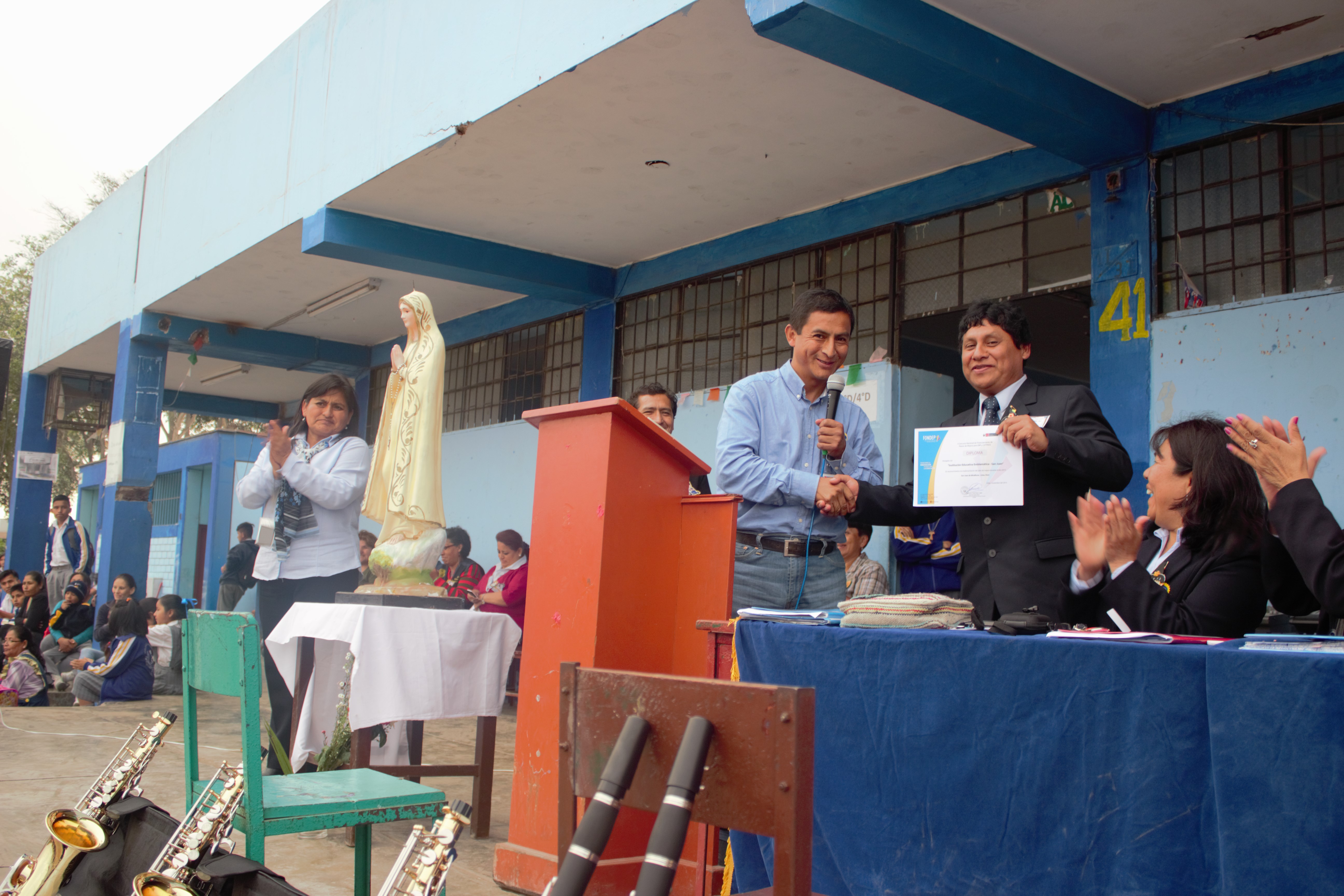 Finalmente, el FONDEP entregó un trofeo y diploma de reconocimiento a la IE por su esforzada labor en la implementación del plan de mejora orientado a la mejora de los aprendizajes.