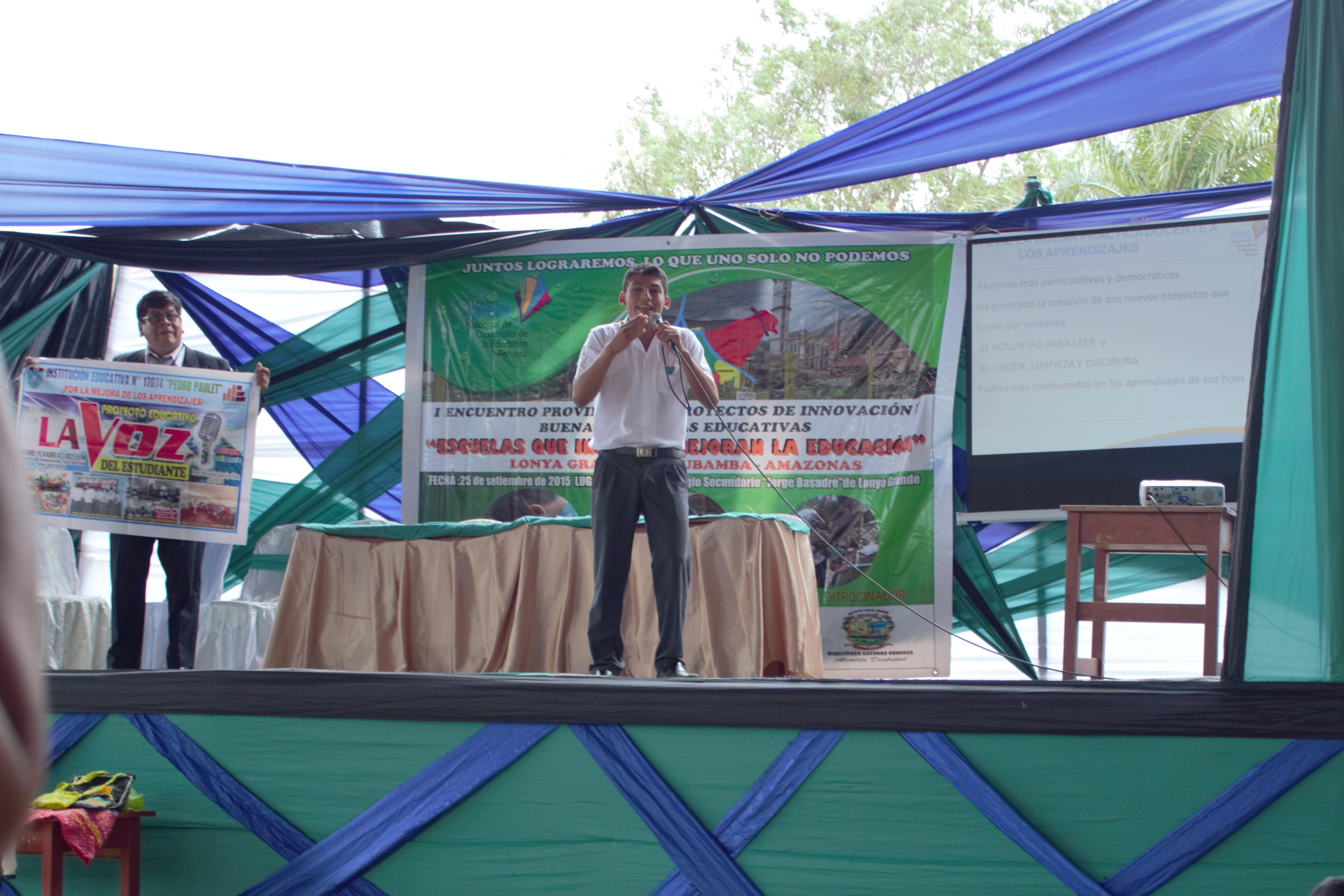 El Fondo Nacional de Desarrollo de la Educación Peruana (FONDEP) participó como jurado calificador en el I Encuentro Provincial de Proyectos de Innovación y Buenas Prácticas Educativas denominado “Escuelas que innovan, mejoran la educación” realizado en el Coliseo Cerrado de la I.E. Jorge Basadre, organizado por la “Red Educativa Maestros Forjadores del Saber con sede en Lonya Grande-Bagua-Amazonas.